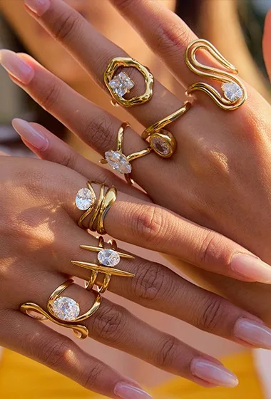 J&D 18K PVD Gold Plate Stainless Steel Rings Trendy Waterproof Delicate Zircon Adjustable Ring