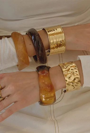 J&D Chunky Luxury Stainless Steel 18K Gold Plated Big Baroque Pearl Textured Irregular Rings