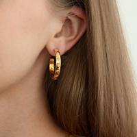 J & D ต่างหูมินิมอลลิสต์ต่างหูสแตนเลสชุบทอง18K ต่างหูห่วงเพทายวงกลมตัวซีเรียบเครื่องประดับสำหรับผู้หญิง